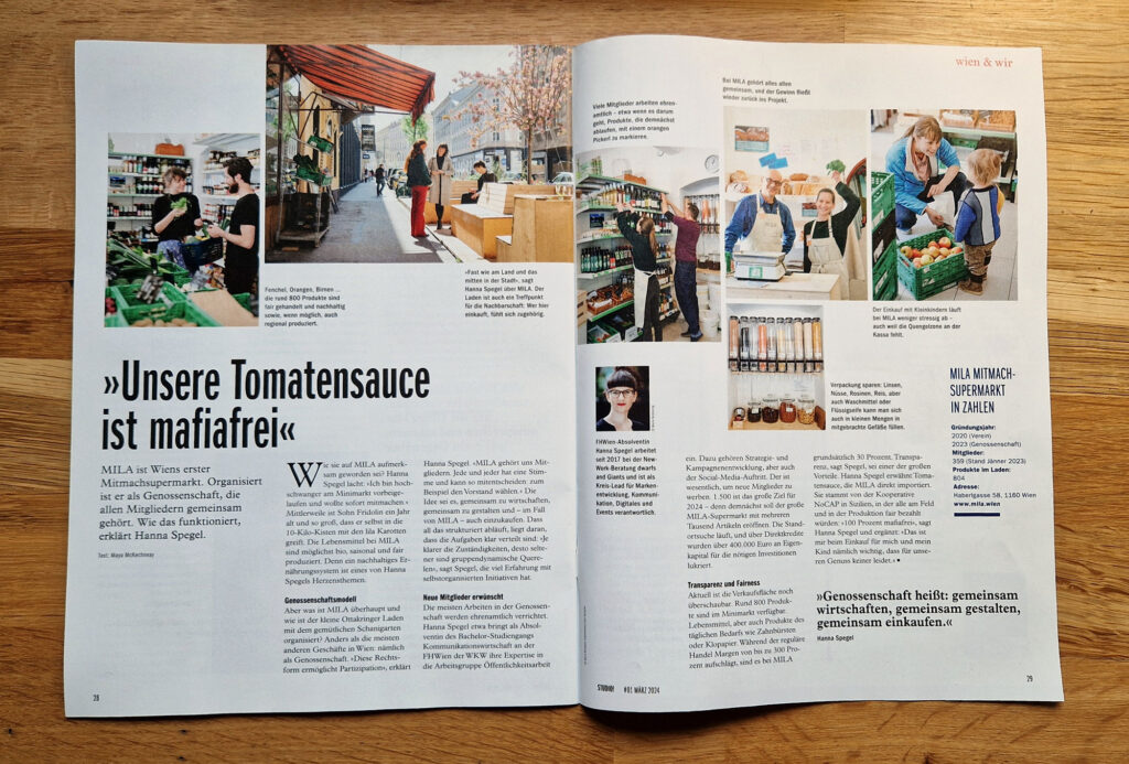 Das STUDIO-Magazin hat mich zu MILA Mitmach-Supermarkt befragt, und ich natürlich so: Fairness! Transparenz! Partizipation! Revolution! ✊ Das ganze Heft war kürzlich in der Wochenend-Ausgabe von DER STANDARD beigelegt, und ich natürlich sofort mit dem Kinderwagen zum nächsten Sonntagsstandl gehüpft. Denn auch als eingefleischte Digitalerin freut man sich, mal was auf handfestem Papier berichten zu dürfen 😉